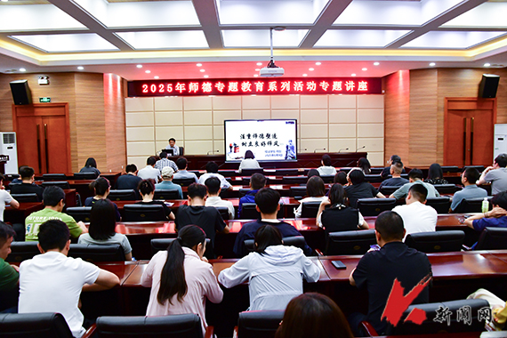 6月9日,J9平台2025年师德教育系列活动专题讲座在校部220会议室举办。校党委常委、副校长宋怡林出席活动。经济与法律学院教师蒋喆以“注重师德塑造 树立良好师风”为题作讲座。全校教职工在主会场和分会场同时收听收看。