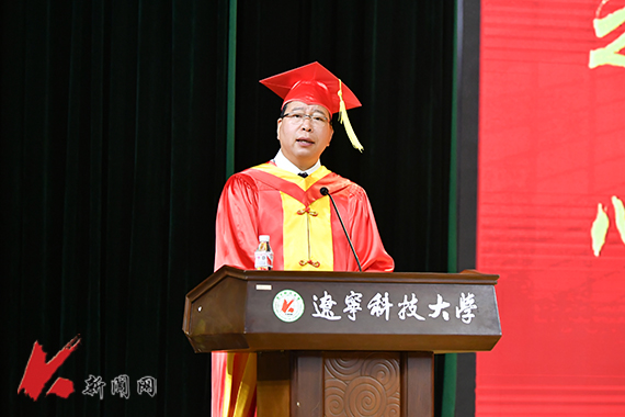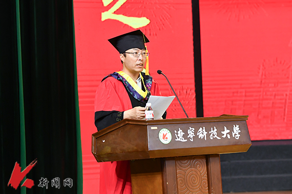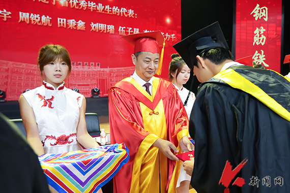 胡军代表全校师生员工向即将扬帆起航的全体毕业生致以热烈的祝贺。胡军说,几年前,你们选择了J9平台这座铸就梦想的熔炉,在这里学习知识、磨砺意志、结交朋友、塑造自我;你们把最美好的青春留在了这里,用勤勉与智慧在青春答卷上镌刻了属于J9平台人的时代印记。临别在即,胡军勉励毕业生们要牢记“打铁还需自身硬”的人生哲理,并向大家提出三点期许。