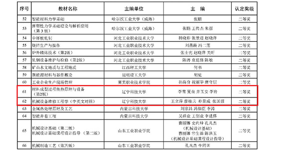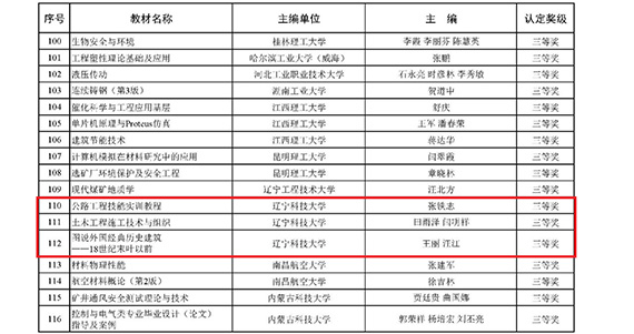 此次获奖的5部教材涵盖了材料科学与工程、机械工程、土木工程等专业领域,内容丰富、特色鲜明,具有较高学术价值和教学实用性。其中,李雪、夏垒、井玉安等主编的《材料成型过程传热原理与设备(第2版)》,以及王立萍、廖桂兵、朴景威等主编的《机械设备维修工程学(中英文对照)》获评二等奖;张铁志主编的《公路工程技能实训教程》,田雨泽、闫明祥主编的《土木工程施工技术与组织》,以及王丽、汪江主编的《图说外国经典历史建筑——18世纪末叶以前》获评三等奖。