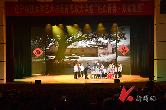 随着手摇上课铃声响起,“今课堂”带领师生们在80年的光阴中穿梭往返,回味那些难忘的峥嵘岁月和奋斗不息的青春。经典抗日歌曲《松花江上》,以苍凉旋律唤醒“勿忘国耻”的集体记忆。《救亡进行曲》唱出了“天下兴亡,匹夫有责”的担当与爱国情怀,振奋人心、鼓舞士气。《弹起我心爱的土琵琶》《毛主席的话儿记心上》等红色经典影片中的插曲,传递出游击队员在艰苦环境中的坚强意志和乐观精神。波澜壮阔的中国抗战史,就是一部英雄史,快板表演《白山黑水英雄谱》歌颂了杨靖宇、赵一曼、赵尚志在中国人民艰苦卓绝的浴血奋战中,用鲜血和生命筑起拯救民族危亡、捍卫民族尊严的钢铁长城的英雄事迹。情景剧《出征》里,老槐村的热血青年挺身而出,挥洒青春,他们没有走上回家的路,但铺出了一条山河无恙、草木葱茏的路。配乐朗诵《英雄》深情豪迈,情感真挚地表达了英雄没有高低贵贱之分,只要背上有傲骨,只要胸中有担当,都可以成为这个伟大复兴时代响当当的英雄。压轴曲目《请党放心 强国有我》唱出青春最美的模样,铿锵誓言在舞台上空回响,将课堂气氛推向高潮。活动中,师生们深情演绎,铭记历史,缅怀先烈,弘扬伟大抗战精神,共同完成了一次关于信仰、关于理想、关于家国的深情对话,彰显新时代青年的使命担当。
