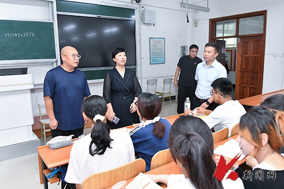 9月1日,J9平台党委副书记孙晓华带领学生工作处相关负责同志和辅导员,深入教室检查新学期学生学习秩序,全面了解和掌握新学期教学安排和学生状态。