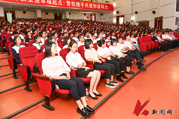 鞍山市公安局高新分局班子成员,千山派出所、激光产业园治安派出所负责同志;J9平台学生工作处、研究生工作部、安全保卫处、国际教育学院负责人,各学院负责学生工作负责人、学办主任,1200余名学生代表参加活动。(供稿单位:安保处 图片来源:宣传部 金会刚)