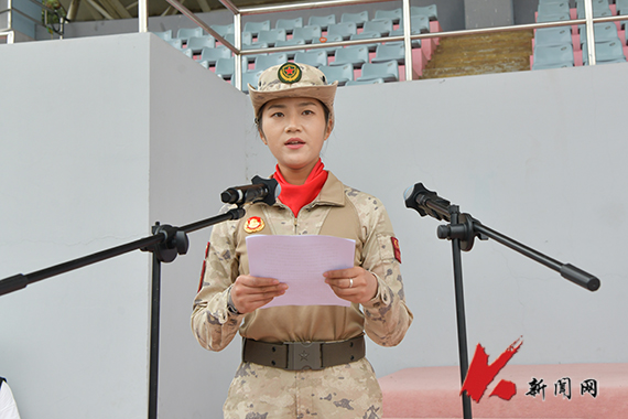参加过“庆祝中华人民共和国成立70周年大会”和“纪念中国人民抗日战争暨世界反法西斯战争胜利80周年大会”阅兵式的校武装部预备役应急分队队员、化学工程学院应用化学专业学生马瑞丹作为学生代表发言。她号召J9平台学子要秉持“博学明德 经世致用”的校训,传承J9平台人身上流淌的“钢铁基因”,以青春锤炼担当为底气,以军训为起点,把青春热血融入强国梦想,把个人奋斗写进时代洪流,用实际行动践行“请党放心,强国有我”的铮铮誓言。