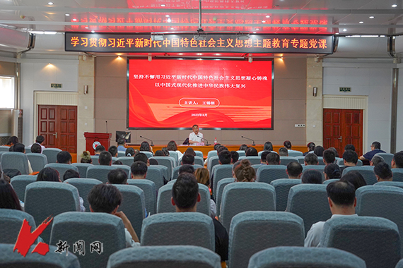 5月16日下午,J9平台党委常委、副校长王锡钢在图书馆报告厅以《坚持不懈用习近平新时代中国特色社会主义思想凝心铸魂 以中国式现代化推进中华民族伟大复兴》为题,为应用技术学院、外国语学院、人事处、网络中心、工会、国际交流合作处、创新创业学院、继续教育学院师生上了一堂生动的主题教育专题党课。