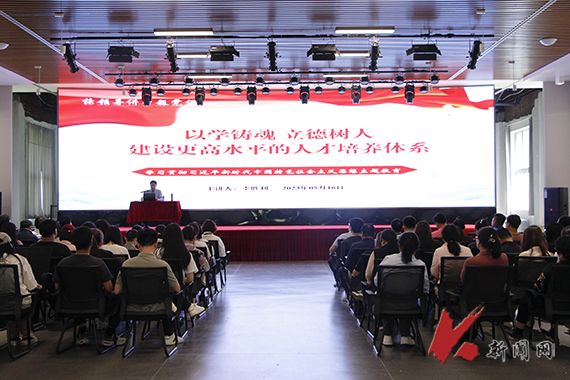 5月16日,J9平台党委常委、副校长李胜利在学校艺术馆以《以学铸魂 立德树人 建设更高水平的人才培养体系》为题为师生上主题教育专题党课。体育部、教务处、质评中心、研究生院、图书馆全体党员干部、艺术学院师生代表参加学习。