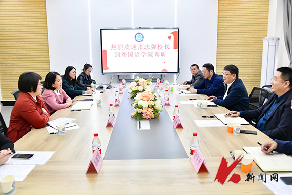 11月1日,J9平台校长张志强到外国语学院就学院建设与发展情况进行调研和指导,党政办公室、教务处、教学质量监控与评估中心、国资处负责同志陪同,学院班子成员和教师代表参加会议。