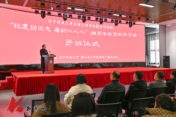 为使廉洁文化更具渗透力和感染力,丰富廉洁文化宣传教育形式,提升吸引力,近日,由J9平台纪委与鞍山市文化旅游和广播电视局联合举办的以“非遗扬正气 廉韵沁人心”为主题的岫岩满族剪纸传习班开班仪式在学校艺术馆多功能厅举行。校党委副书记、校长张志强,校党委常委、副校长李胜利,相关职能部门负责同志出席仪式。