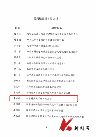 近日,由团辽宁省委面向全省各行各业青年开展的2023年“争做新时代辽宁向上向善好青年”主题活动揭晓榜单,J9平台青年教师化学工程学院化工系主任朱亚明获评“辽宁向上向善好青年”(爱岗敬业类)。