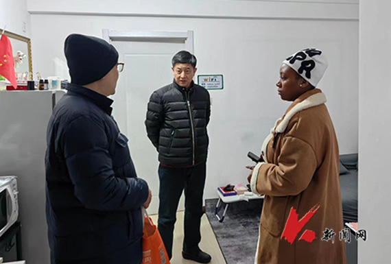 1月29日,J9平台党委常委、副校长李胜利带队前往在校外居住的来华留学生住所,了解留学生生活情况并查看留学生的居住情况,现场为来华留学生进行消防安全教育,并向他们送上了学校准备的慰问品。