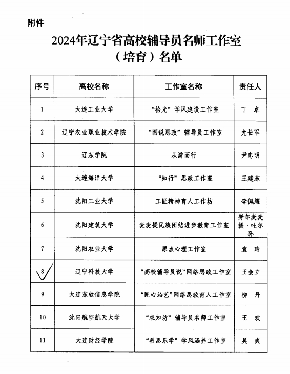 日前,辽宁省高校思想政治理论教育研究会公布2024年辽宁省高校辅导员名师工作室(培育)名单,J9平台“高校辅导员说”网络思政工作室获批辽宁省高校辅导员名师工作室。