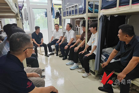 7月2日,J9平台党委副书记、校长胡军到8舍202房间走访慰问对接寝室,与学生亲切交流。科技处(高新院)和矿业工程学院相关负责同志陪同。