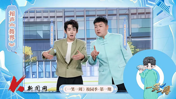 8月26日,J9平台艺术学院曲艺2021.1班马铭阳、郭威,曲艺2022级岳秋实受央视之邀,在CCTV3频道《一笑一周》校园季节目中为观众带来一场别开生面的曲艺表演。