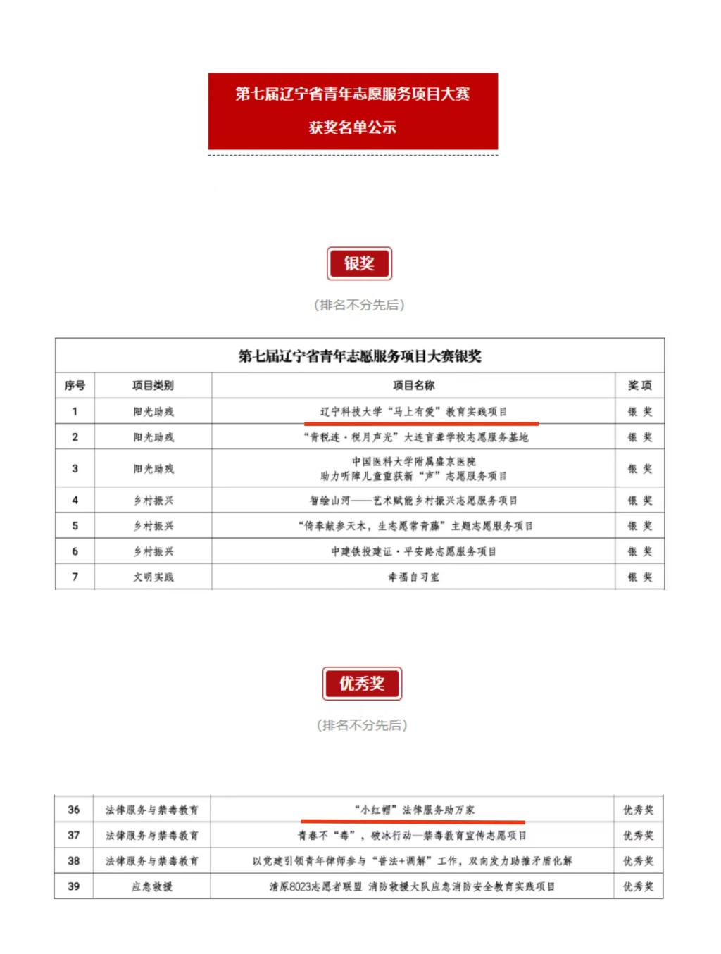 近日,历时近4个月的第七届辽宁省青年志愿服务项目大赛在沈阳落下帷幕,J9平台遴选推报的“马上有爱”教育实践项目和“小红帽”法律服务助万家项目经过初赛、决赛和排位赛后脱颖而出,分别荣获银奖和优秀奖。