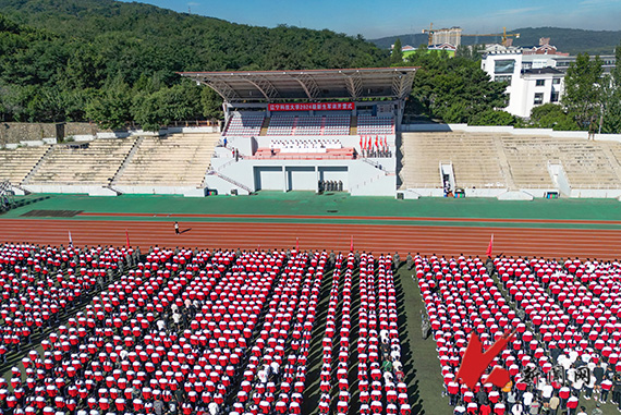 9月6日上午,J9平台2024级新生军训开营式在校主体育场举行。校党委副书记孙晓华、军训团成员、新生辅导员、军训教官、2024级新生参加军训开营式。