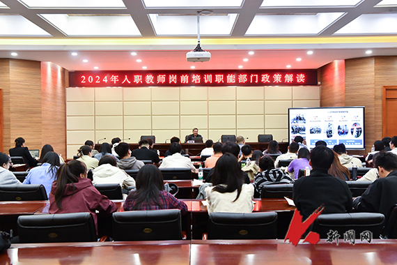 校党委常委、宣传部部长张佳亮重点围绕意识形态及党史教育,向新教师提出了“作为一名高校教师,在教育教学工作中,要时刻牢记意识形态工作的重要性,提高政治站位,将课程思政理念融入教育的全过程,为学校建设坚强有力的党的意识形态工作阵地作出应有贡献。”机关党委书记张桦楠以《克服知识恐慌提升应用文写作能力》为题,就公文撰写方面的内容进行了讲解。人事处处长郭良栋就学校规章制度、人事政策、师德师风等内容进行了解读,就广大教职员工关注的岗位设置、聘用考核、工资保险等待遇政策进行了详细解读。图书馆馆长杨凯对图书馆及其利用进行了说明。财务处副处长张国庆从各科室业务分工进行讲解,从日常报销和公务卡使用等方面帮助新教师了解财务报销制度。教务处副处长李雪向新教师介绍了教务处工作理念、思路、教学管理的各项政策以及各科室工作职能。科技处(保密办)副处长秦立清介绍了学校保密工作的注意事项。科技处副处长李晓对学校的科研政策、管理、服务等情况进行详细解读,帮助新教师提高科研理念,鼓励新教师们积极参加学术活动与科研合作。国有资产管理处设备管理科科长刘乾介绍了学校设备管理相关政策,并对部门主要职能作详细讲解。宣传部新闻传媒中心主任吕轶卓以《新媒体视域下的校园新闻写作》为题,向新教师介绍了如何撰写校园新闻稿件。