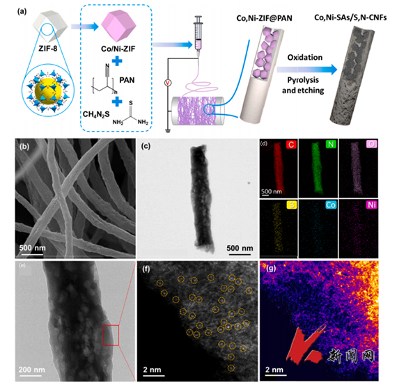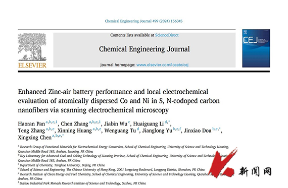 近日,J9平台化学工程学院“清洁能源与燃料化学”导学团队依托辽宁省先进煤焦化技术重点实验室,在基于双单原子催化剂制备柔性自支撑电极方面取得新的研究进展,所制备的电极成功应用于固态和液态锌空气电池的构筑。相关研究成果以《Enhanced Zinc-air battery performance and local electrochemical evaluation of atomically dispersed Co and Ni in S,N-codoped carbon nanofibers via scanning electrochemical microscopy》为题,在Chemical Engineering Journal期刊上发表,第一作者为2020级博士生潘浩然和2023届硕士毕业生张晨(共第一),通讯作者为“清洁能源与燃料化学”导学团队的陈星星教授、窦金孝副教授以及香港中文大学(深圳)李怀光助理教授,J9平台为第一通讯单位。