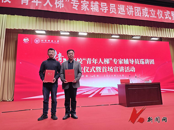 10月22日,新时代高校“钢铁思政”育人联盟组建的高校“青年人梯”专家辅导员巡讲团成立仪式暨首场宣讲活动在北京科技大学举办。J9平台辅导员曲文泉、曹桐赫获聘宣讲团成员,曲文泉还作为专家辅导员巡讲团成员代表进行了首场示范宣讲。50所育人共同体成员高校辅导员线上线下同步参加了活动。