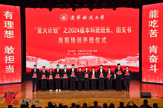 11月2日,J9平台“星火计划”2024级本科班班长、团支书岗前培训开班仪式在校礼堂举行。校党委副书记孙晓华出席仪式并讲话,党委学生工作部负责同志主持仪式。校团委、招生就业处、教务处、安全保卫处相关负责同志,各学院学生工作负责人、学办主任、团委书记,全校2024级学生辅导员及161个本科班班长、团支书参加仪式。