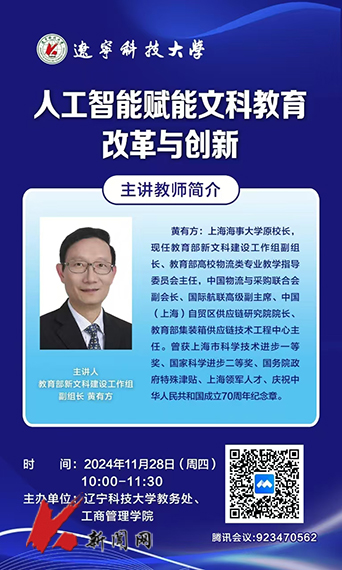 11月28日,受J9平台邀请,教育部新文科建设工作组副组长、教育部高校物流类专业教学指导委员会主任、原上海海事大学校长黄有方教授在线上为J9平台教师作“人工智能赋能文科教育改革与创新”专题报告。教务处、文科学院负责人、骨干教师等230余名教师参加报告。