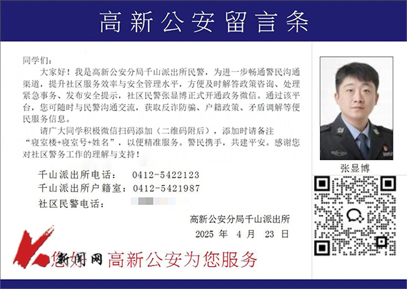 安全帮扶全覆盖,构建警示防线。学校持续深化与千山派出所联动共建,开展“民警进校园”活动。通过校、警联合开通政务微信,选派9名民警与全校学生建立微信对接,实时监测通报电信诈骗的趋势性动态和苗头性线索,提供反诈防骗、矛盾调解等服务信息,及时防范提醒,避免造成现实危害或引发不良情况。通过不定期联合开展“反诈大讲堂”活动,以案说法,提升学生识诈、防诈、反诈能力,营造了浓厚的校园反诈氛围。