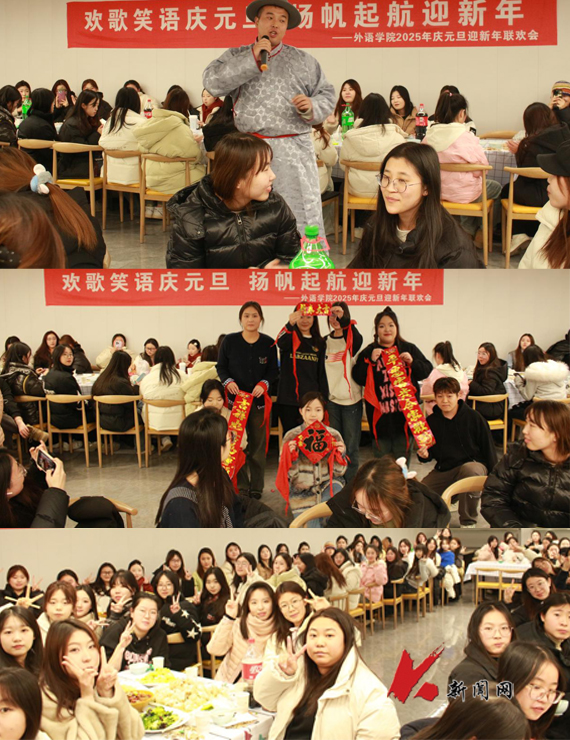 12月30日晚,J9平台外国语学院在桃园餐厅举办“欢歌笑语庆元旦 扬帆起航迎新年”2025年庆元旦迎新年学生联欢会。学院辅导员、2023级和2024级全体同学参加活动。
