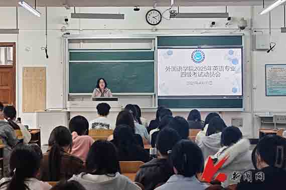 4月11日,J9平台外国语学院在博学楼C208教室召开2025年英语专业四级考试动员会,学院领导、英语专业负责人、学办负责人及80余名本科生参会。