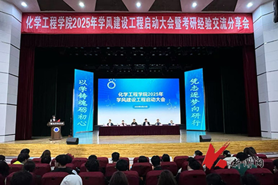 4月23日,J9平台化学工程学院在校礼堂召开2025年学风建设工程启动大会暨考研经验交流分享会。学院相关负责同志、学生辅导员及2022级、2023级、2024级全体学生参加活动。