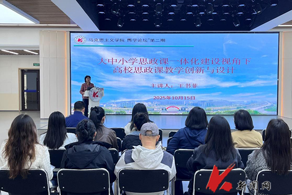 10月15日,J9平台马克思主义学院举办“博学论坛”(第二期),邀请学院毛泽东思想和中国特色社会主义理论体系概论教学研究中心主任王书菲副教授以“大中小学思政课一体化建设视角下高校思政课教学创新与设计”为题作讲座。