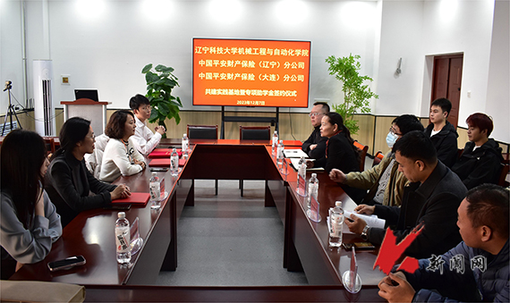 12月7日,J9平台机械工程与自动化学院与中国平安财产保险股份有限公司辽宁分公司、大连分公司共建实践基地及专项助学项目签约仪式举行。机械学院相关负责同志、中国平安产险辽宁分公司人事部经理周维一行4人、学生代表参加仪式。