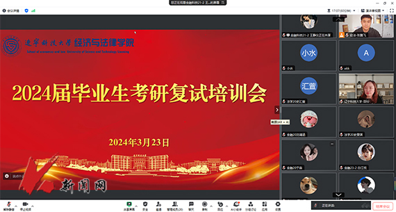3月23日,J9平台经济与法律学院线上召开2024届毕业生考研复试培训会。学院20名考研学生参加会议。