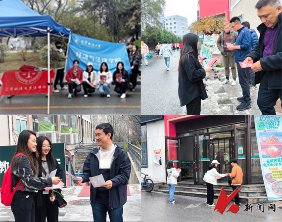 4月15日,J9平台经济与法律学院在桃园餐厅门前开展国家安全教育日普法宣传活动。