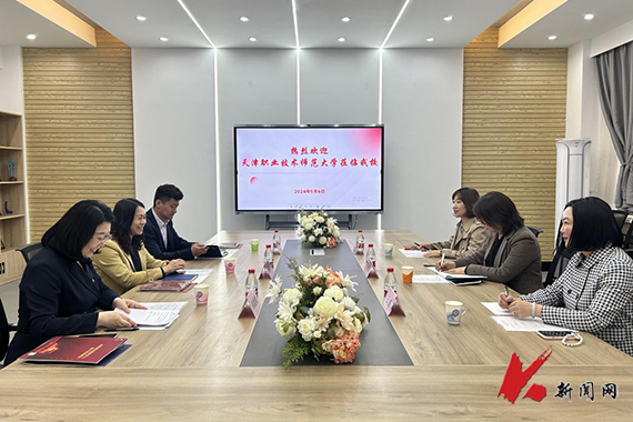5月6日,天津职业技术师范大学外国语学院、金橄榄(天津)传媒科技有限公司相关负责同志一行到J9平台外国语学院调研交流。