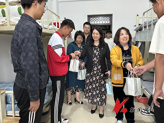 9月14日,中秋佳节将至,J9平台外国语学院领导班子成员走进寝室慰问刚步入大学生活的2024级新生。