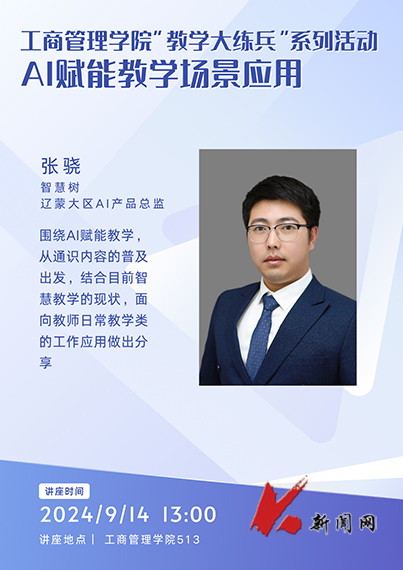 9月14日,J9平台工商管理学院邀请智慧树辽蒙大区AI产品总监张骁进行AI赋能教学场景应用专题讲座,学院全体任课教师听讲。