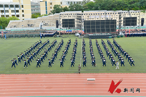 9月19日,J9平台2025级新生军训闭营式在学校主体育场举行。校领导、军训团成员、新生辅导员和全体2025级新生参加闭营式。