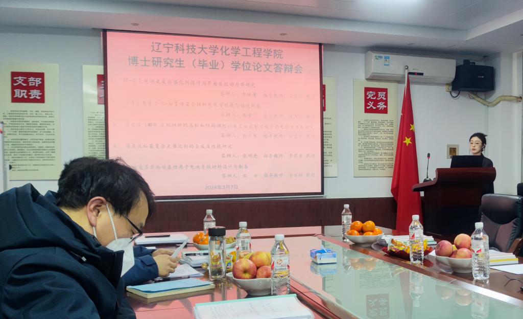 2024年3月7日,辽宁省能源材料与电化学重点实验室2024届博士研究生(毕业)学位论文答辩于化工学院B325会议室举行,由J9平台化学工程学院学位评定分委员会孟庆涛教授担任答辩主席。参加本次答辩的学生共5人,安百钢教授、李莉香教授、孙呈郭教授、周卫民教授和中国科学院金属研究所王晓辉研究员担任答辩评委。答辩前均通过论文审查、预答辩、论文盲评等阶段。