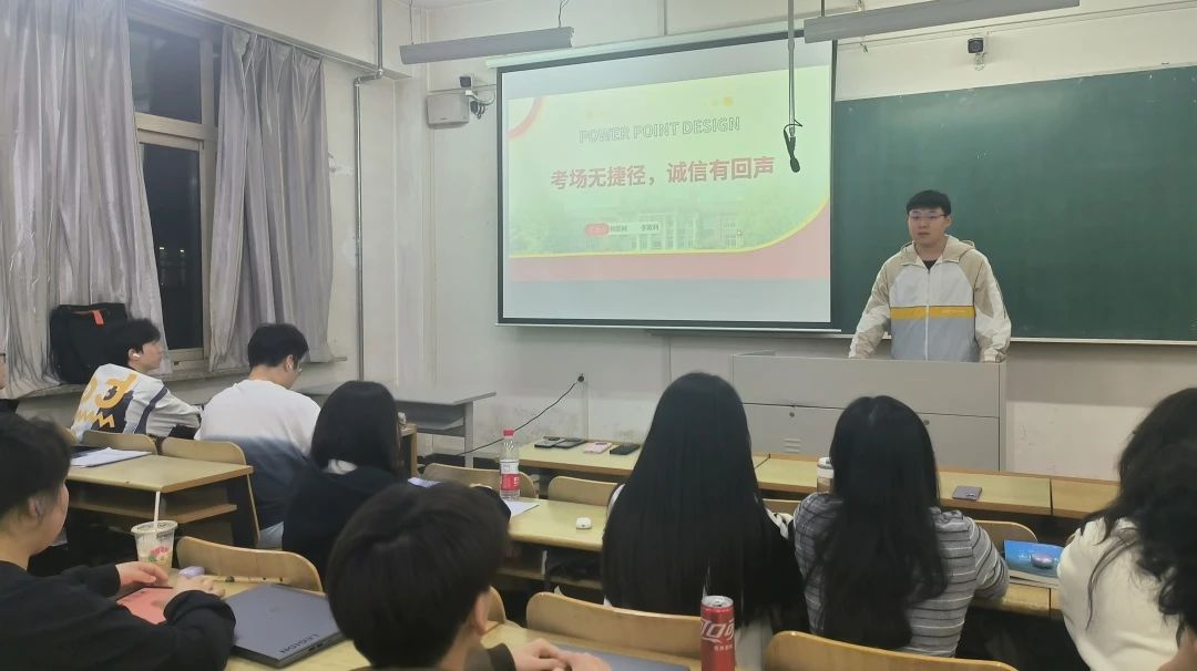 宣讲员李双利则从"考场无捷径"的角度展开讲解。他指出,真正的学习成果来自平时的点滴积累,任何投机取巧的行为最终都会得不偿失。通过分享优秀学子的备考经验,他鼓励同学们以踏实的态度对待每一场考试,用真才实学赢得属于自己的成绩。