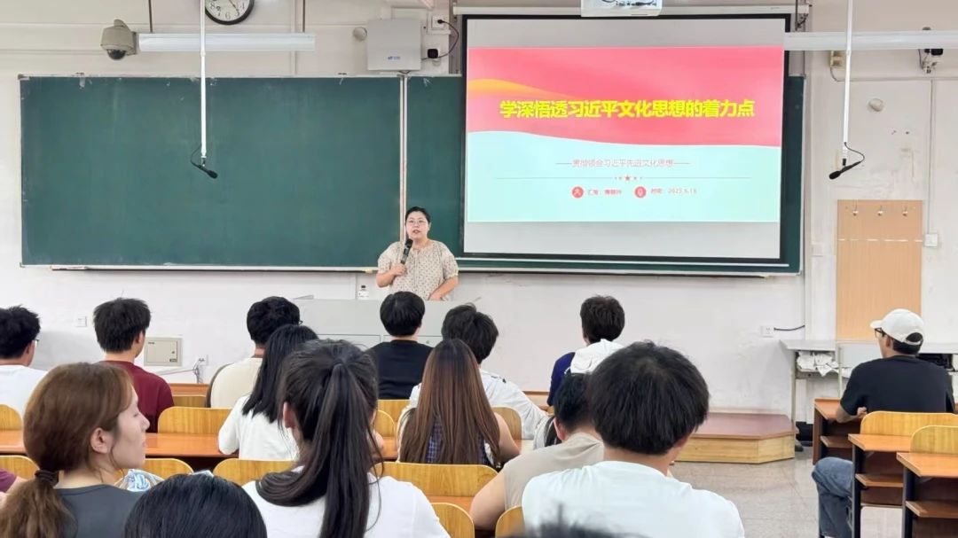 在习近平文化思想主题班会上,辅导员们组织学生学习《习近平文化思想学习纲要》,教育引导学生坚定文化自信,自觉担当新时代的文化使命。辅导员着重强调,新时代青年要以“传承不守旧、创新不忘本”的精神,将习近平文化思想融入日常学习与实践。