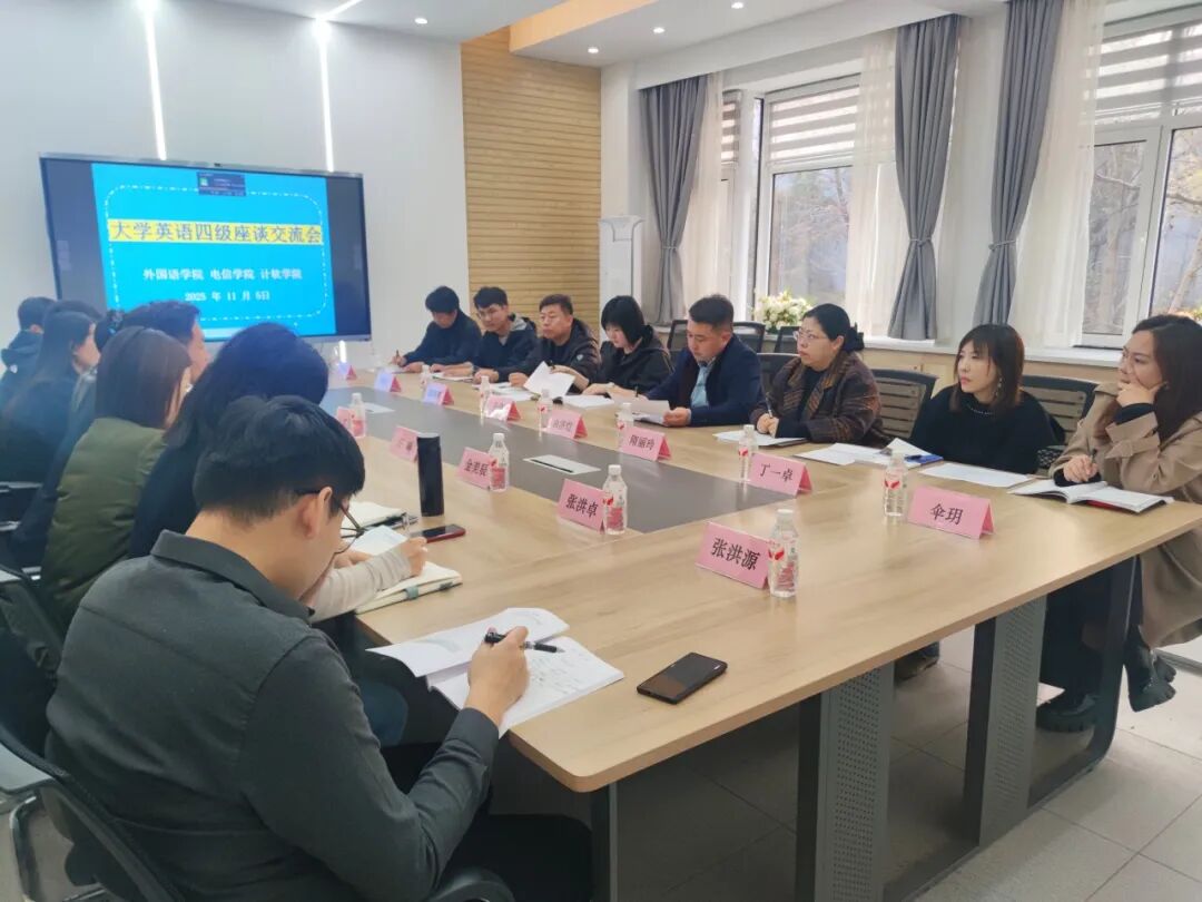 2025年11月5日下午,计算机与软件工程学院携手外国语学院在博识楼A211开展英语四级座谈会,两院相关负责同志、公共外语教研室主任、2024级和2025级辅导员等参加会议,聚焦四级备考痛点,共研提升对策。