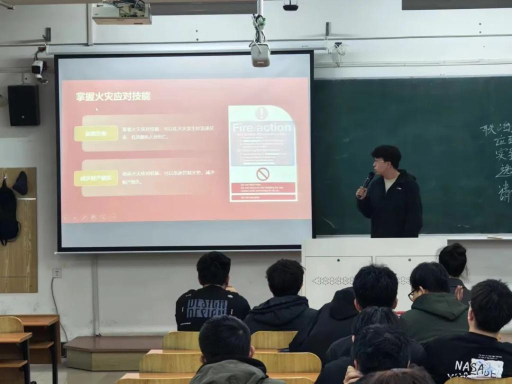 宣讲活动以“知识赋能,防患于未然”为主旨,借助现场诠释与视觉媒介的有机结合,向同学们深入浅出地传授了火患的日常侦查方法、初期火灾的临危应变之策、紧急疏散的逃生技巧以及灭火器的正确运用等宝贵技能。