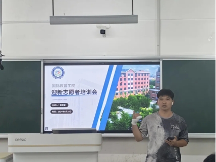 8月28日下午,为全面做好2024级新生迎新工作,增强志愿者的服务意识,确保新生入学工作安全有序开展,国际教育学院在博学楼C106组织召开了迎新志愿者培训会,辅导员张翀睿与全体迎新志愿者参与会议。