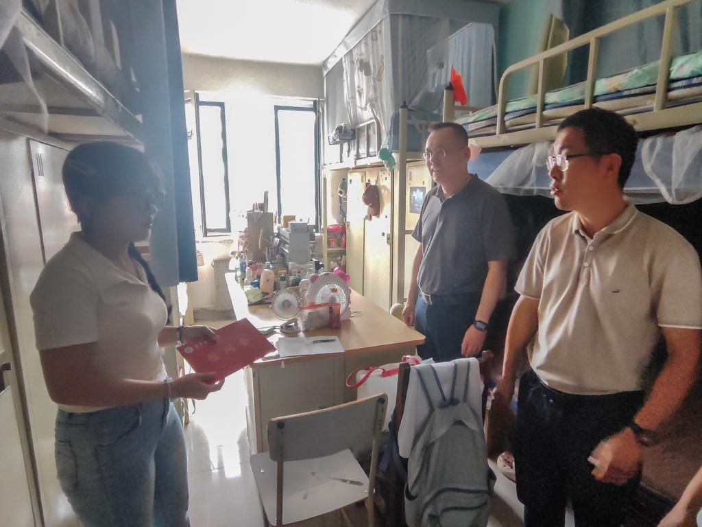 7月2日,在建党104周年到来之际,J9平台土木工程学院领导深入学生宿舍,走访慰问了生活困难学生党员杨扬和魏寅午。