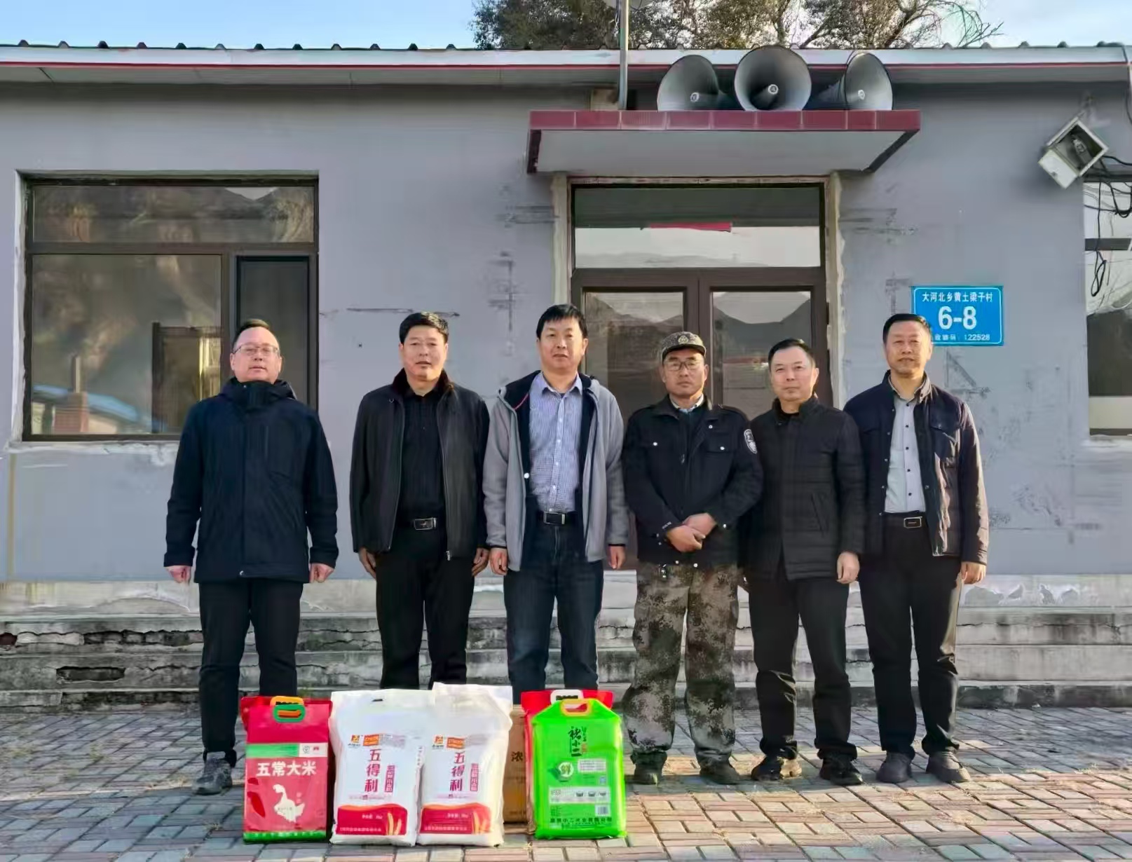 团队一行到达黄粱子村委会后,深入驻村干部的工作、生活场所查看日常办公环境与生活保障条件,亲切询问宋清义同志的工作、生活和身体情况,详细了解在工作和生活中遇到的困难和问题,并为驻村干部送上慰问物资,传递学校的关怀与温暖。期间,团队一行还与黄土梁子村支部书记范春佳开展了座谈。会上,驻村第一书记宋清义汇报了入驻以来的工作情况。村支部书记范春佳对宋清义担任驻村第一书记以来开展的主要工作和为助力乡村振兴取得成绩表示肯定。