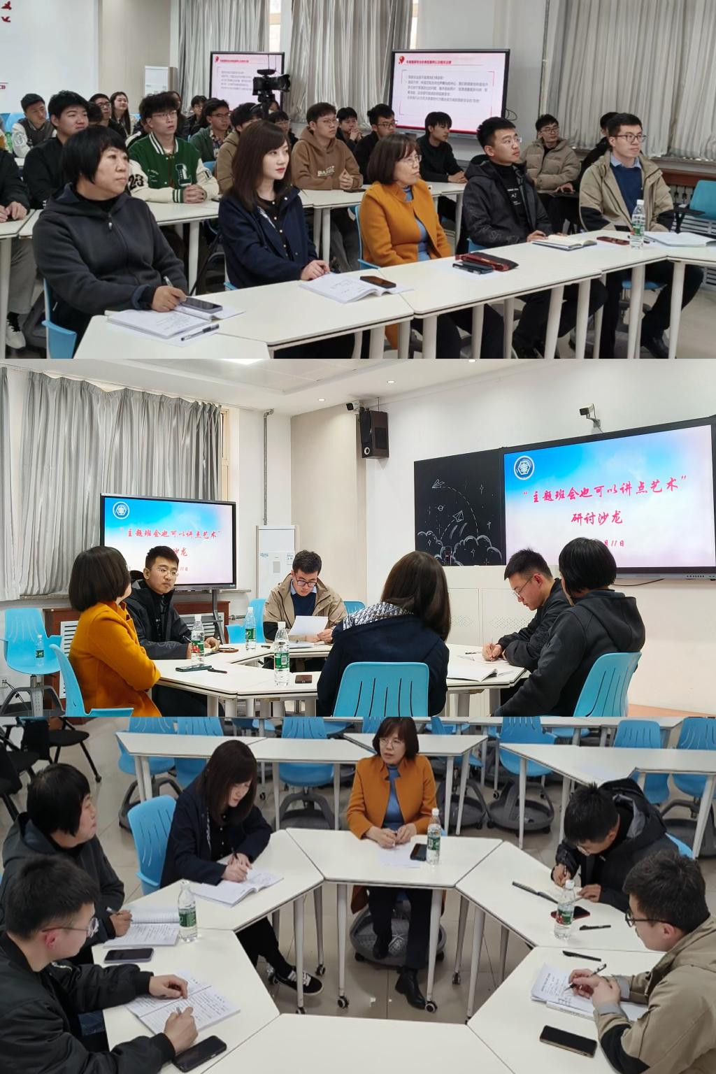 互动环节,与会辅导员纷纷畅谈了观摩体会,并从夯实理论素养、增加互动环节、对标教育实际、提升整体感染力等方面提出针对性意见建议。随后,大家围绕“主题班会也可以讲点艺术”内容进行深入研讨,并就班会的形式和创新、提升班会吸引力和艺术性的尝试、青年大学生的现实需求、依托班会提升育人质量等话题展开交流碰撞,现场氛围热烈、金句频出。学院党委书记周晓平总结发言,她充分肯定了团队定期研讨对分享经验、凝聚共识、提质增效的重要作用,并对加强学院班会质量建设提出具体要求。一是内容贴近需求、形式灵活多样,充分吸引学生参与并引起广泛共鸣;二是挖掘学生闪光点,注重把握沟通尺度,保证学生接受度;三是加强业务能力建设,展现自身魅力和语言感染力,以此提升班会质量和效果。
