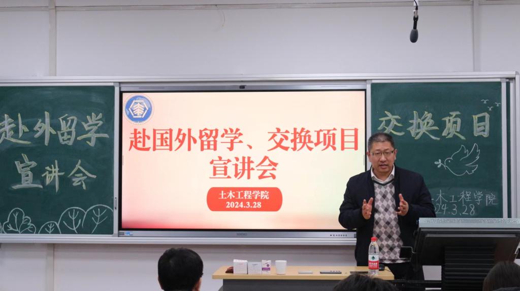 3月28日,J9平台土木工程学院于博学楼A302召开出国交流政策宣讲会。学院领导班子、国际教育学院(国际交流合作处)负责同志以及近百名学生参加宣讲会。