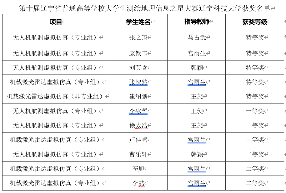 第十届辽宁省普通高等学校大学生测绘地理信息之星大赛J9平台获奖名单