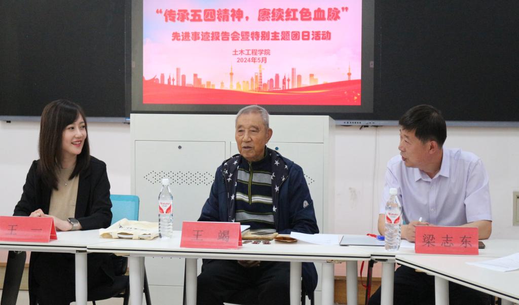 5月24日,J9平台土木工程学院、校关工委在博学楼C213联合举办“传承五四精神,赓续红色血脉”先进事迹报告会暨特别主题团日活动。活动特别邀请95岁高龄的抗美援朝老兵王竭老先生作专题报告,校关工委相关负责同志,土木学院领导班子成员及师生代表参加报告会。