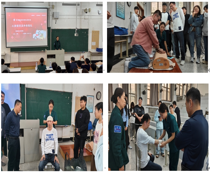 会后,董丽和张诗语为与会师生演示了心肺复苏、头部包扎、眼部包扎和手臂包扎等内容,并结合师生操作情况进行针对性指导。