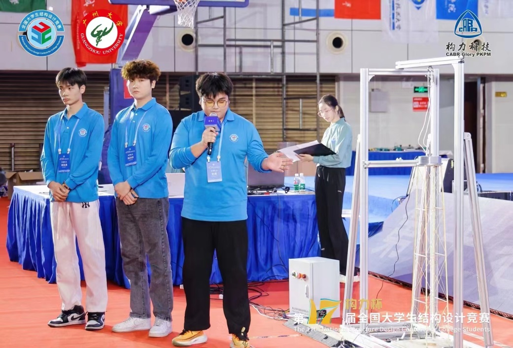 11月7日-10日,由全国大学生结构设计竞赛委员会主办,广州大学承办的2024年全国大学生结构设计竞赛总决赛成功举办。本届总决赛在全国31个省(自治区、直辖市)组织分区赛的595所高校、1863支参赛队伍中择优选拔产生119所高校120支队伍参赛。我校土木工程学院指导教师李吉人,带领刘兆豫、杨泽炜和赵瑱3名同学代表学校参赛,他们不畏强手、奋勇拼搏,经过16小时现场模型制作、陈述答辩、模型加载等环节激烈比拼,夺得总决赛二等奖,实现了我校在该项赛事的历史性突破。