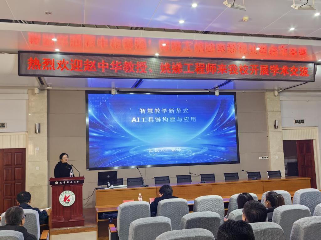 赵中华以“智启新程:AI赋能高校数字化教学多维创新实践”为题,系统阐述了AI技术驱动下教育领域的深刻变革。她认为,高校数字化教学正步入机遇与挑战交织的转型关键期,AI技术将为传统教学模式带来革命性影响。通过七个维度的实践案例,她具体展示了AI在教学设计、BOPPPS教学模式优化、教学资源升级等场景的应用价值,并结合各学科发展特点,提出智能时代高校教师的成长路径——向AI“借力、借智、借时间”。姚娣的报告题目为“智慧教学新范式:AI工具链构建与应用”,内容主要聚焦人工智能与教学场景的深度融合。她通过典型应用案例,生动展示了AI如何破解教学规模化与个性化的矛盾,构建覆盖课前、课中、课后的智慧教学新范式。报告结束后,两位嘉宾与在场师生就AI技术在教学中的实际应用、各专业教学创新等话题进行了深入交流,现场气氛热烈。